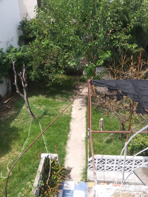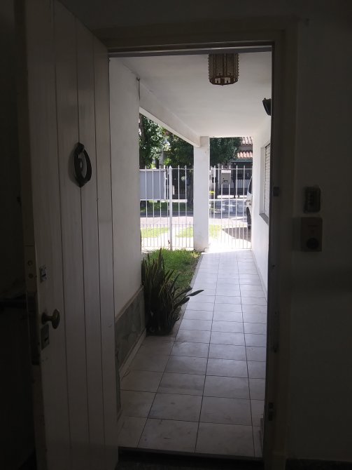 Casa de 4 ambientes, con entrada de auto y garage cubierto para uno (Local), porch, pequeño living con vista al frente y pasillo lateral, cocina con mueble bajo mesada y alacena. La cocina posee vista al pasillo lateral y salida al quincho. El quincho posee techo metálico de apertura manual y cerramiento. Lavadero incorporado en el quincho. Patio con parrilla semicubierta y fondo libre con arboles frutales. Escalera de material ubicada en el patio con acceso a amplia terraza. Y tres dormitorios con placard y un baño completo.