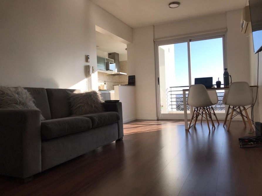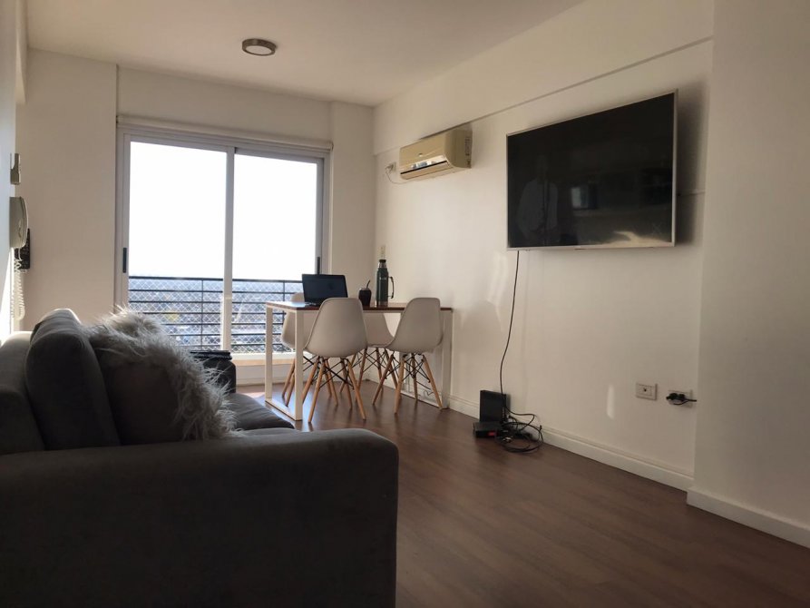 Hermoso departamento de 2 ambientes, en en piso 19, con espectacular vista. Living comedor con hermosa vista al Oeste y salida al balcón. Cocina con lavadero integrado y barra desayunadora. Baño completo y un dormitorio con placard. - SIN COCHERA -