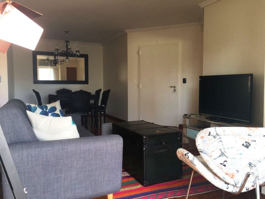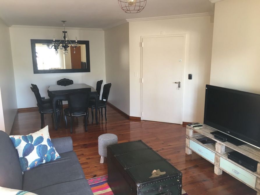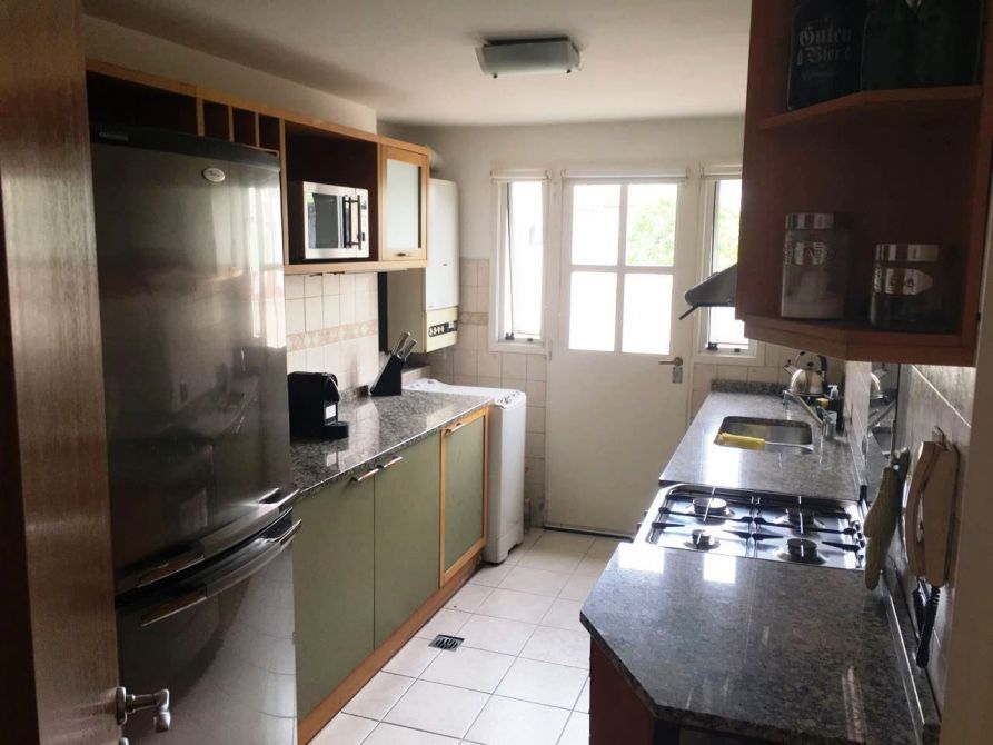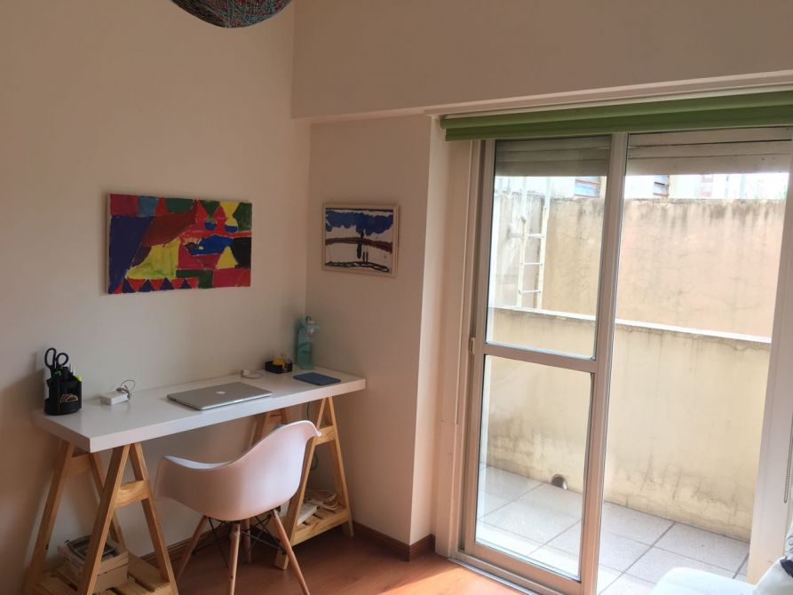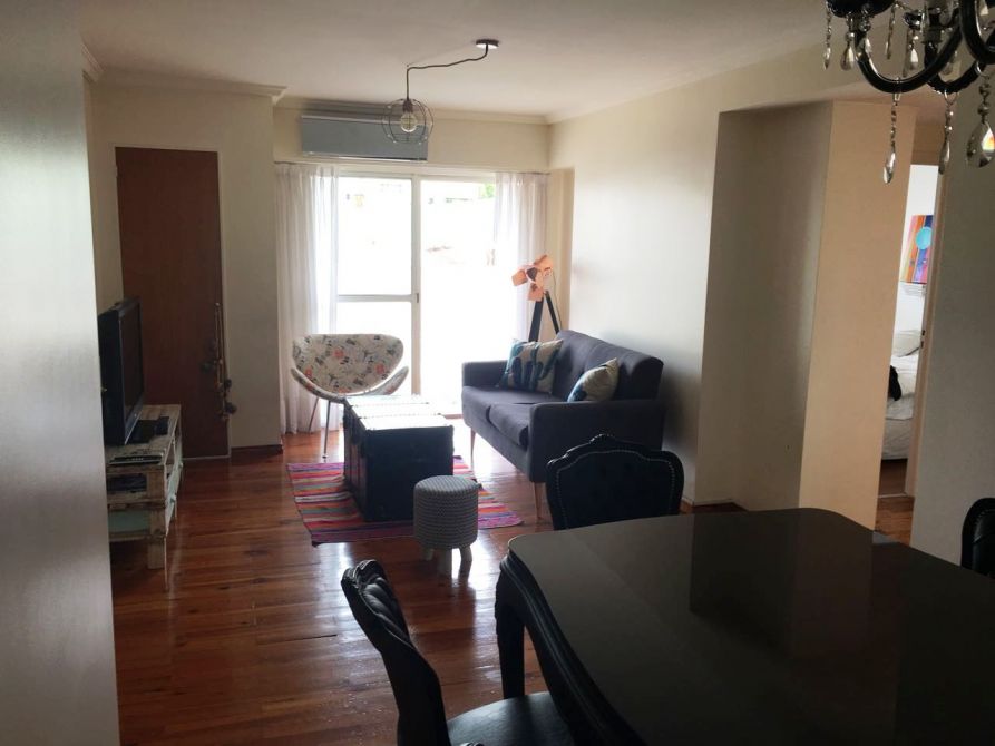 Inmejorable zona. Consta de living comedor con pisos de pimotea entarugado plastificado, cocina con amoblamientos de 1º calidad altos y bajos, doble mesada. Lavadero. baño completo totalmente nuevo (2011) dos dormitorios con pisos flotantes con placard e interiores. Balcón terraza de 52 mts cuadrados, de uso exclusivo, al cual se accede desde el livnig y cocina. Cochera semi - cubierta, baulera. Impecable!