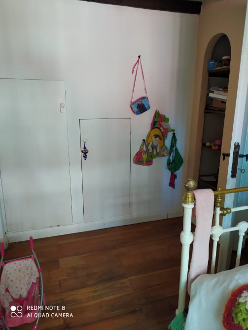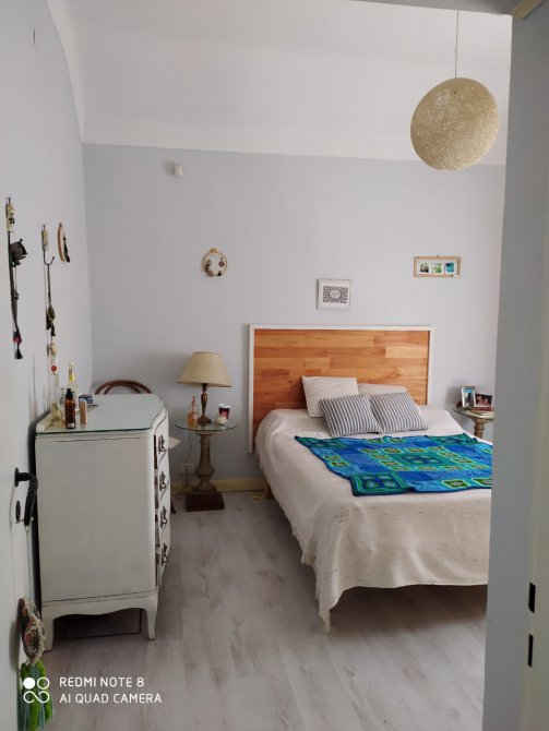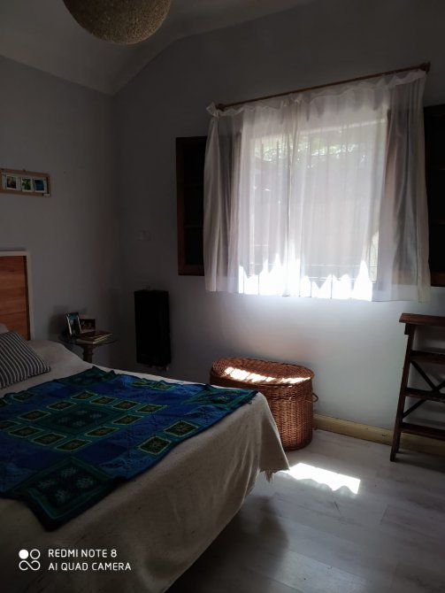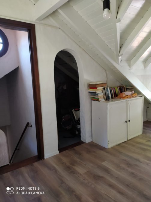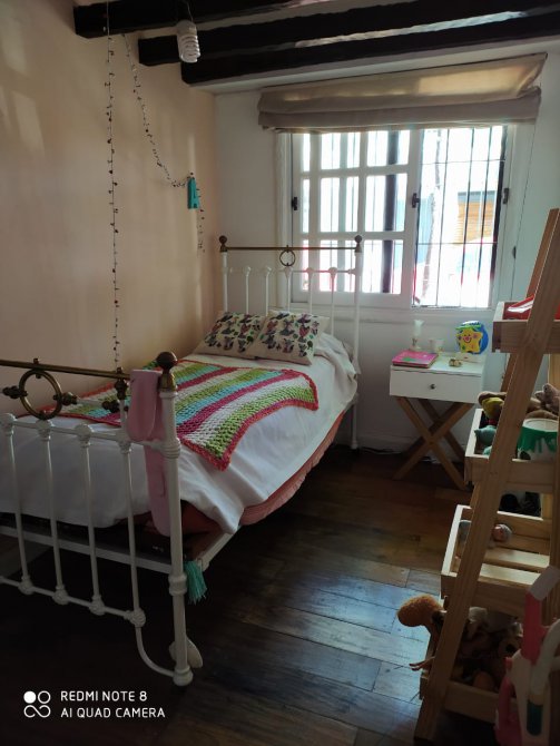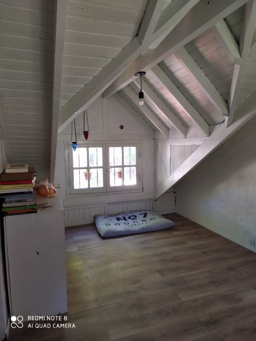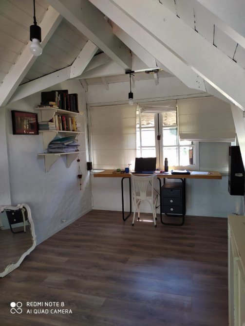 PA: Cuarto dormitorio o escritorio, con techo de madera a la vista pintado de blanco.