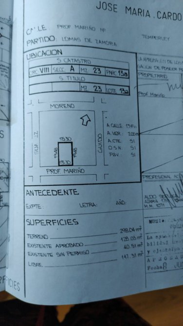 Chalet en muy buena ubicación en Temperley Oeste a dos cuadras de la estación. El mismo se desarrollo sobre un lote de 15,30m x 19,48m y consta de dos plantas.