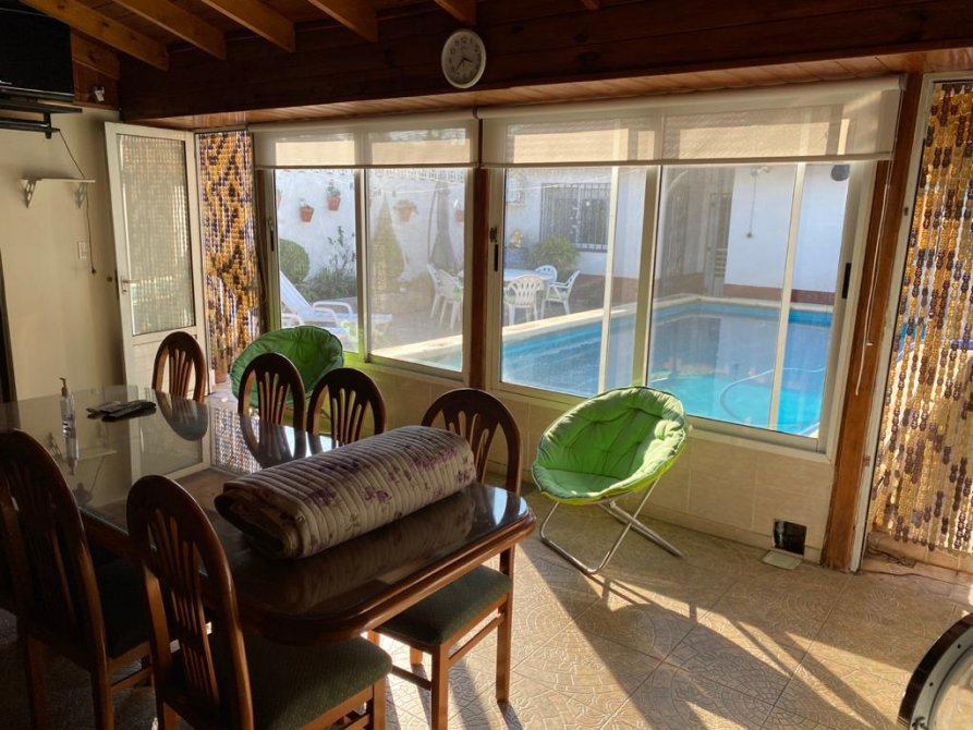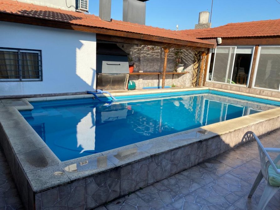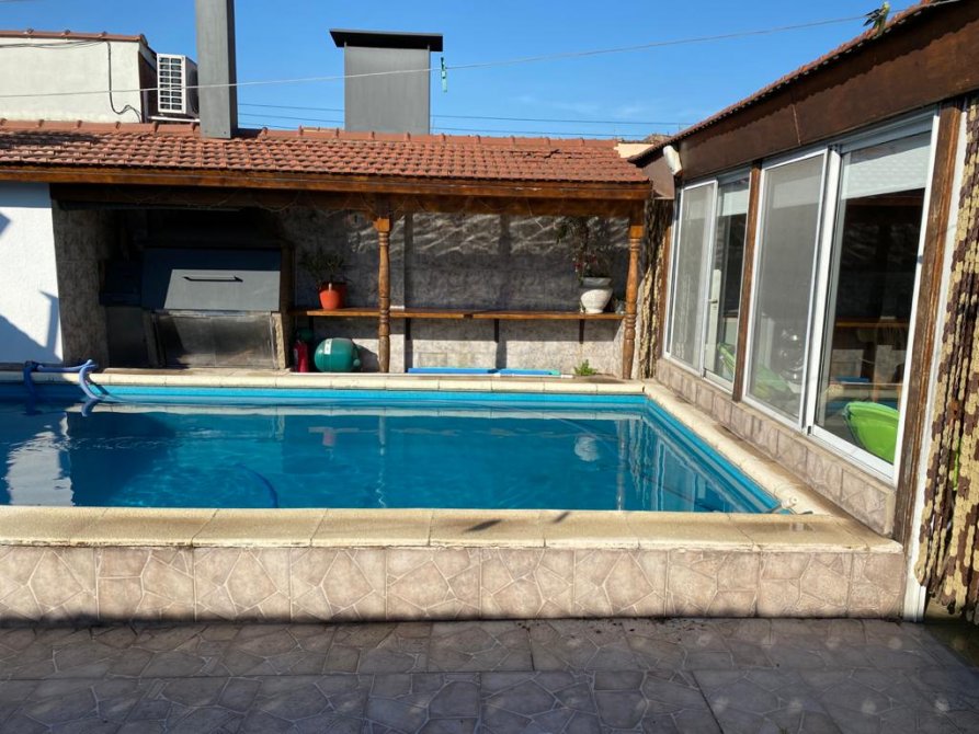 Chalet sobre lote de 10 x 30m aprox. construído en una sola planta. El mismo se compone de entrada de auto, garage cubierto y pasante (total 8.50m*2.60m). Living comedor, cocina comedor, un baño completo, dos dormitorios y quincho de 4m x 10m y piscina.