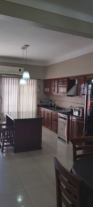 PB: Jardín al frente, entrada de auto. Amplio living comedor con bow windows y desnivel, amplia y luminosa cocina comedor con muebles bajo y sobre mesada en madera, campama e isla también en madera con mesada de mármol. Dos dormitorios con placard (ppal con piso de madera y el otro con piso flotante). Baño completo con bañera y mampara.
