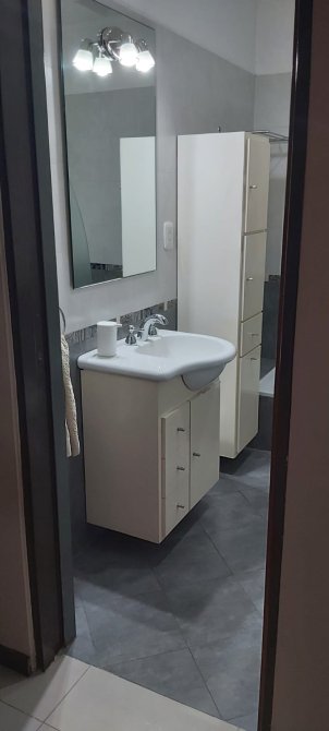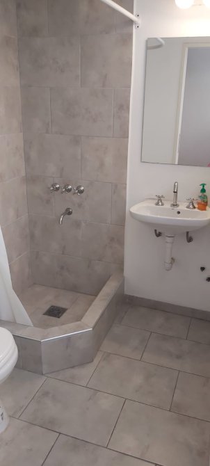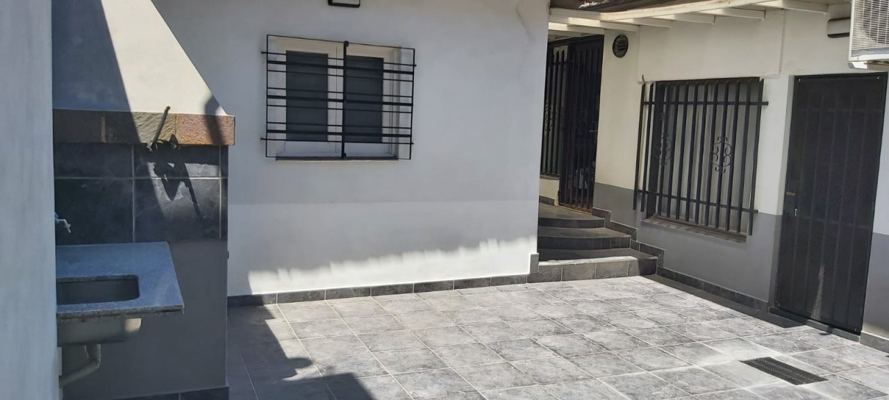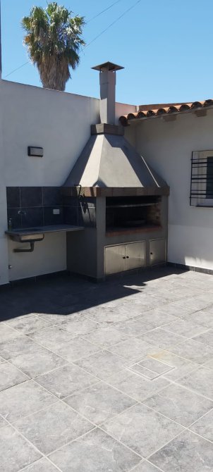 Patio, con parrilla y mesada con pileta, cuarto de enseres con lavadero incorporado y baño con ducha.